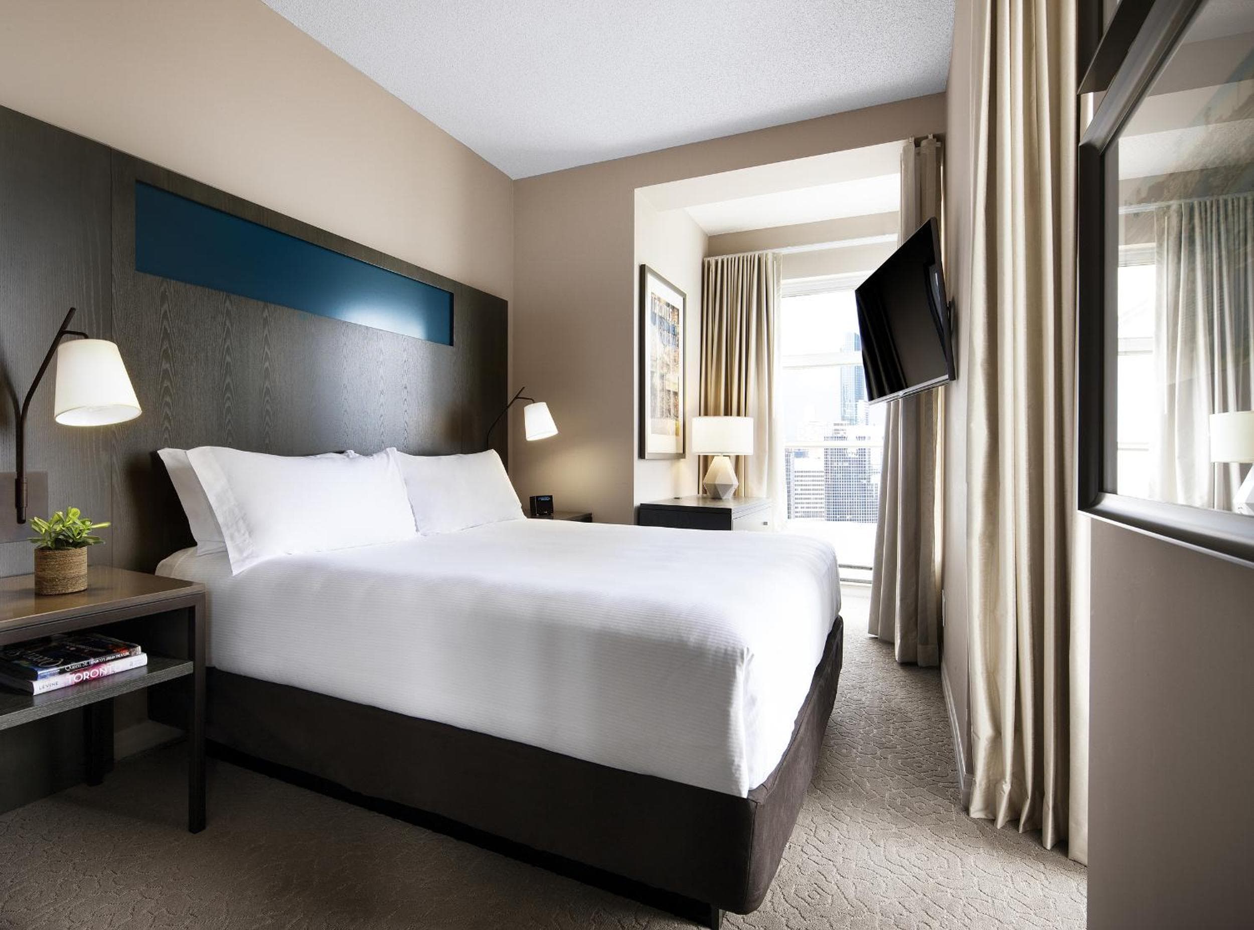 Stay fit at the on-site fitness centre or savor a meal at the hotel's restaurant and bar. With Roy Thomson Hall a short walk away and easy access to Billy Bishop Toronto City Airport, convenience meets luxury at One King West Hotel and Residence.